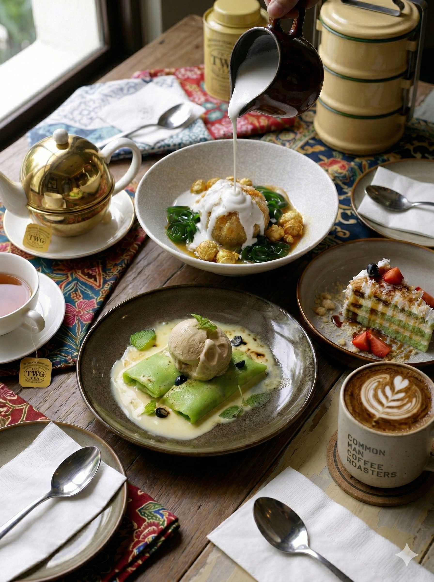 Enjoy your choice of Common Man Coffee or TWG Tea, paired with signature dessert (choice of Ondeh Ondeh Cake, Kueh Durian, Chendol) for a leisurely mid-day treat in the heart of Katong-Joo Chiat.