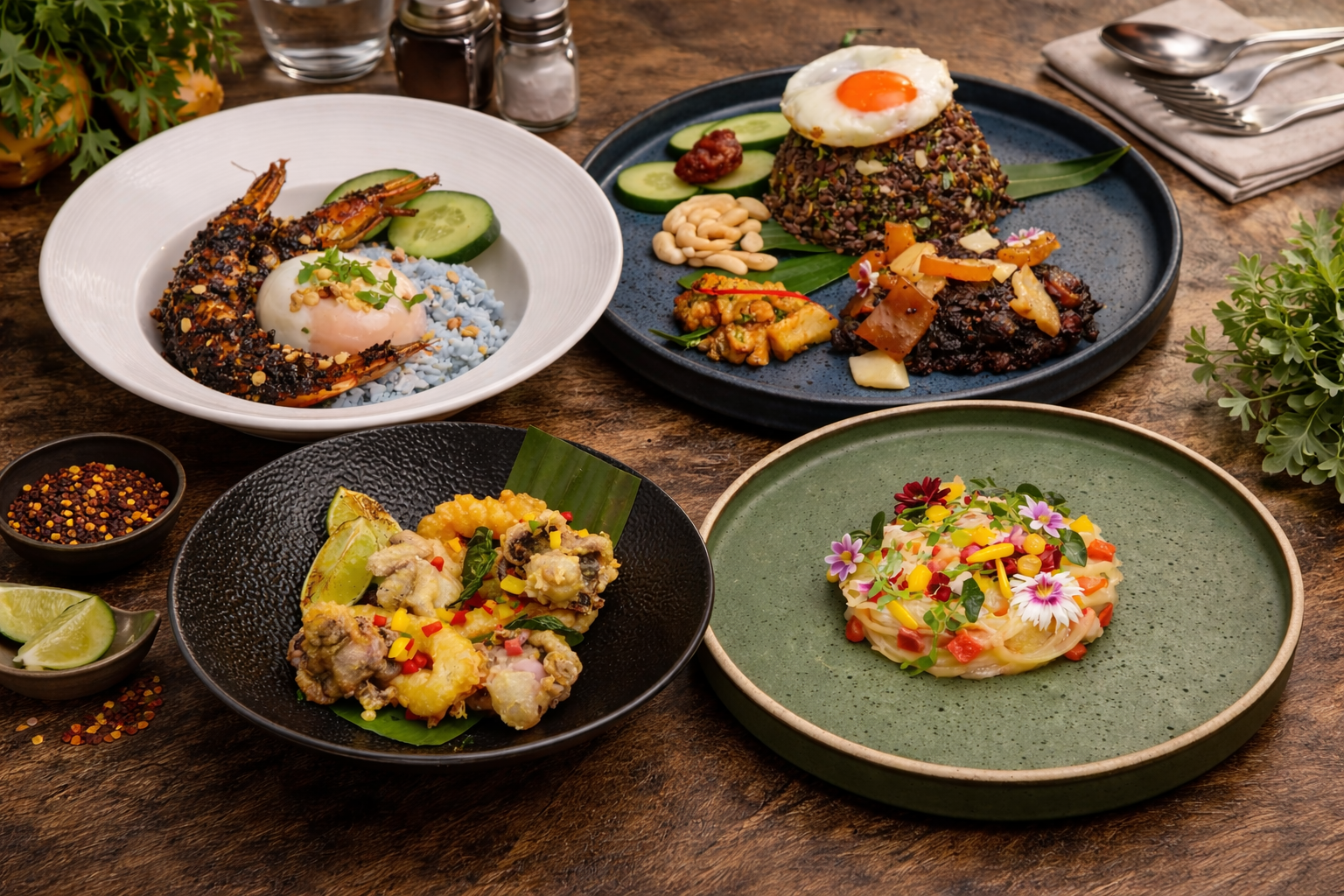 Indulge in signature mains such as Nasi Lemak Risotto with King Prawn and Ayam Buah Keluak Fried Rice, alongside more exciting creations to savour.
